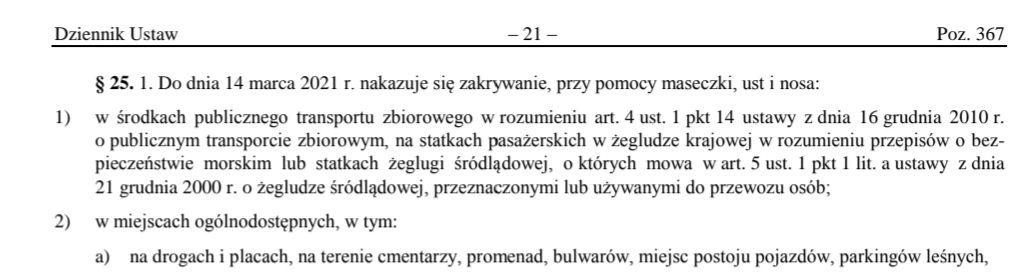 Dziennik Ustaw Maseczki : - To oznacza, że wiadomo już, kiedy nakaz zasłaniania ust i nosa nawet na świeżym powietrzu zostanie zniesiony.. W dzienniku ustaw opublikowano nowe rozporządzenie rządu ws wśród zapisów znalazł się wyczekiwany przepis o zniesieniu obowiązku noszenia maseczek na świeżym. Przy ogłaszaniu harmonogramu luzowania obostrzeń na maj, rząd postawił jeden warunek, konieczny do zniesienia tego obowiązku. W dzienniku ustaw opublikowano w czwartek rozporządzenie rady ministrów, zgodnie z którym od 15 maja nie będziemy musieli nosić maseczki na otwartym powietrzu. Rozporządzenie rady ministrów w sprawie ustanowienia określonych ograniczeń, nakazów i zakazów w związku z wystąpieniem stanu epidemii opublikowano w czwartek wieczorem w dzienniku ustaw. Tu znajdziesz zarówno aktualne jak i archiwalne akty prawne opublikowane w dzienniku ustaw.